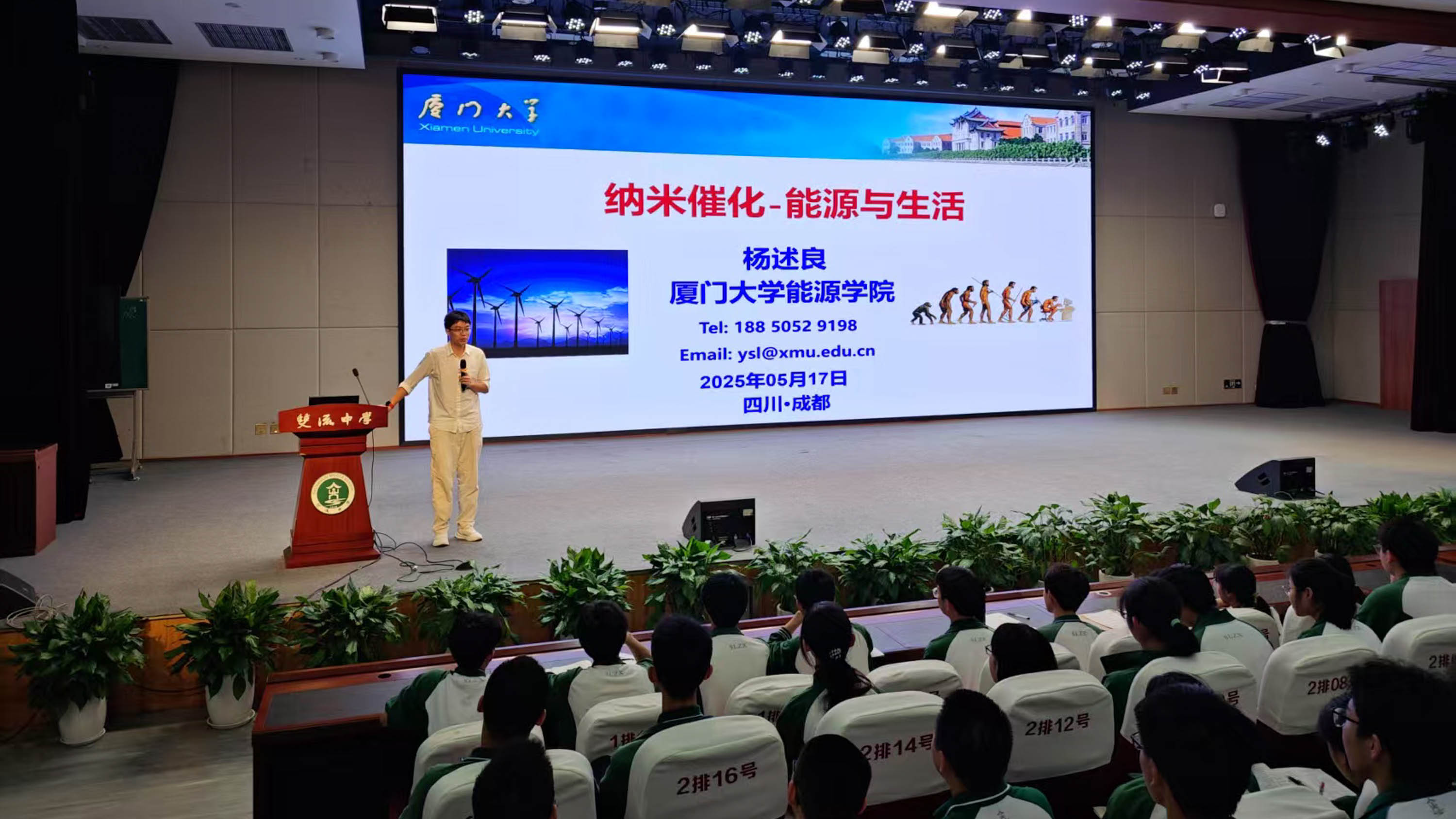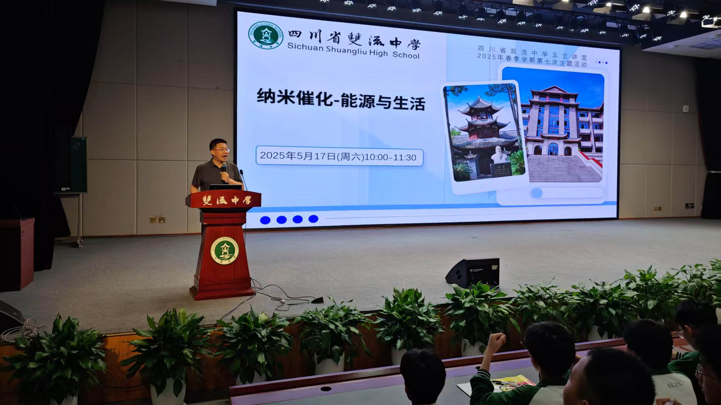 近日,為深化同學(xué)們對前沿科技與日常生活聯(lián)系的理解,四川省雙流中學(xué)玉蘭講堂邀請到廈門大學(xué)納米催化領(lǐng)域?qū)<覘钍隽冀淌?,以“納米催化——能源與生活”為主題,為同學(xué)們帶來了一場知識與思想交融的盛宴。