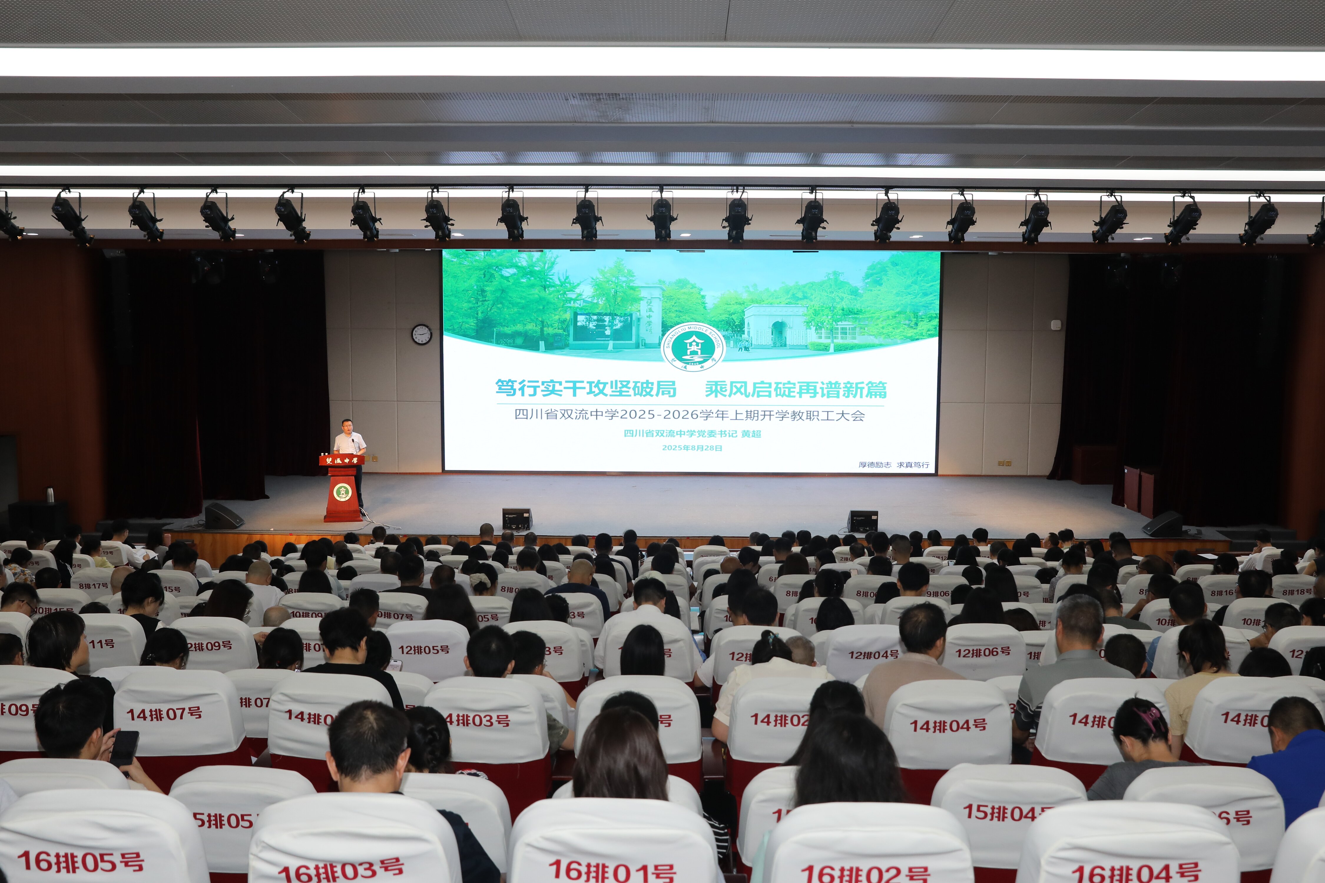 殘暑漸退,秋意初顯。8月28日上午,我校全體教職工齊聚玉蘭廳,隆重召開2025-2026學期上期全體教職工大會。會議由雙流中學黨委副書記、副校長(主持行政工作)杜江濤主持。本次大會以“篤行實干攻堅破局,乘風啟碇再譜新篇”為主題,旨在回顧過去一學期的奮斗歷程,部署新學期的發(fā)展方向與重點任務,激勵全體教職員工以堅定的信念、實干的作風和開拓的精神,共同開啟高質(zhì)量發(fā)展的新篇章。