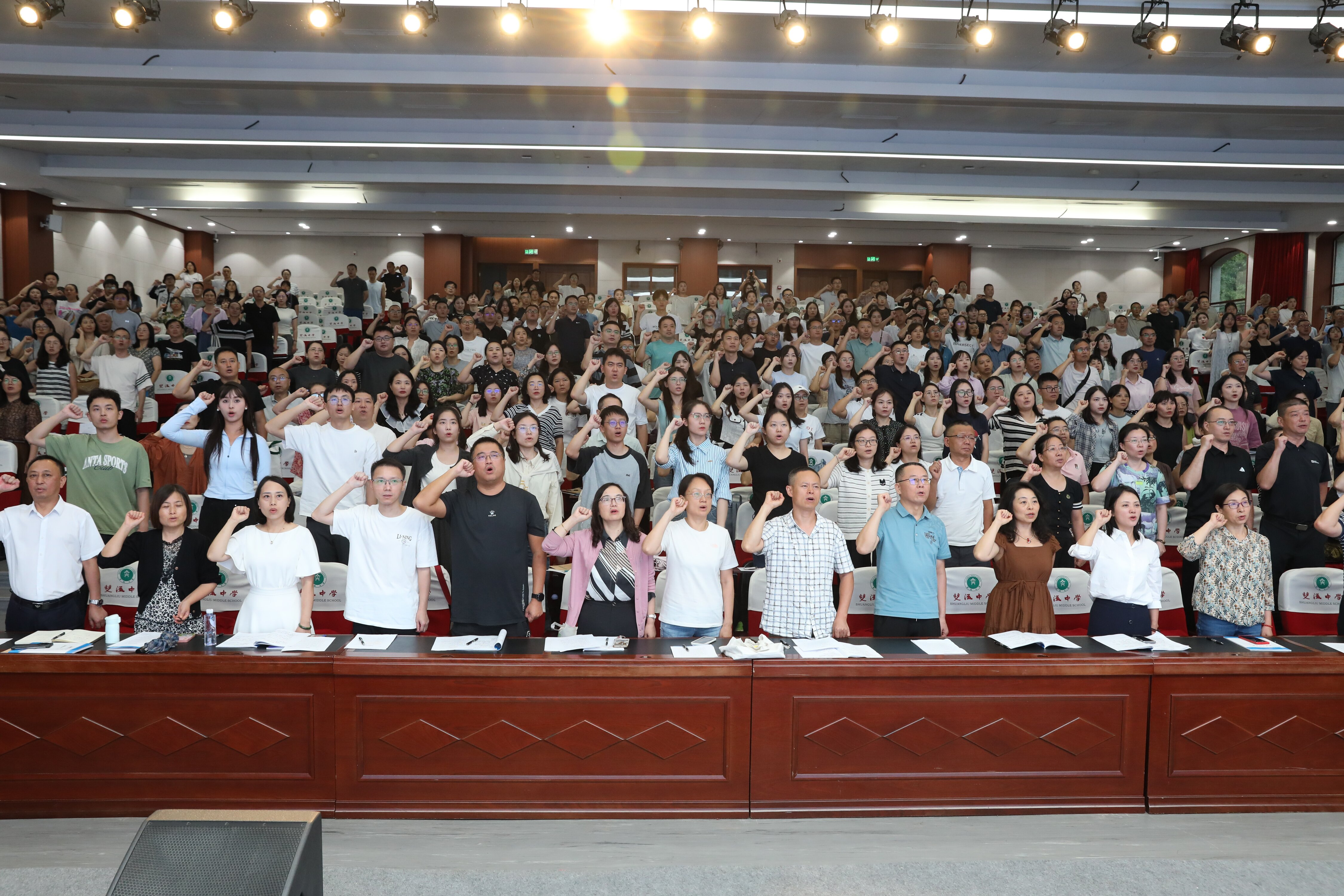 隨后,杜江濤副校長帶領全體教師舉行師德師風宣誓儀式。教師們鄭重承諾恪守職業(yè)道德、規(guī)范從教行為,踐行“學高為師、身正為范”的教育初心。此次宣誓儀式進一步強化了教師們的崗位意識與責任擔當,為新學期各項工作高效、有序開展奠定了堅實的基礎。
