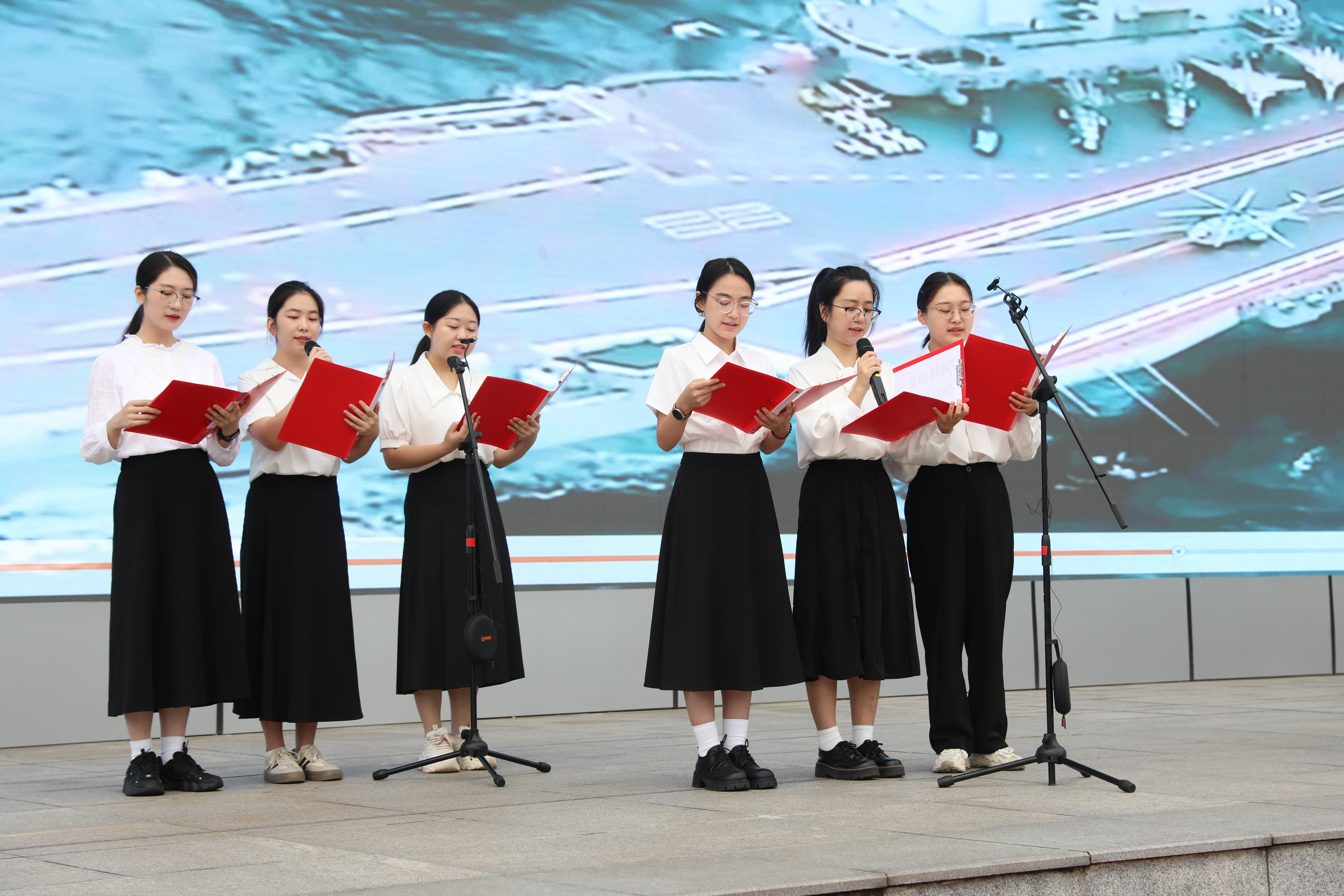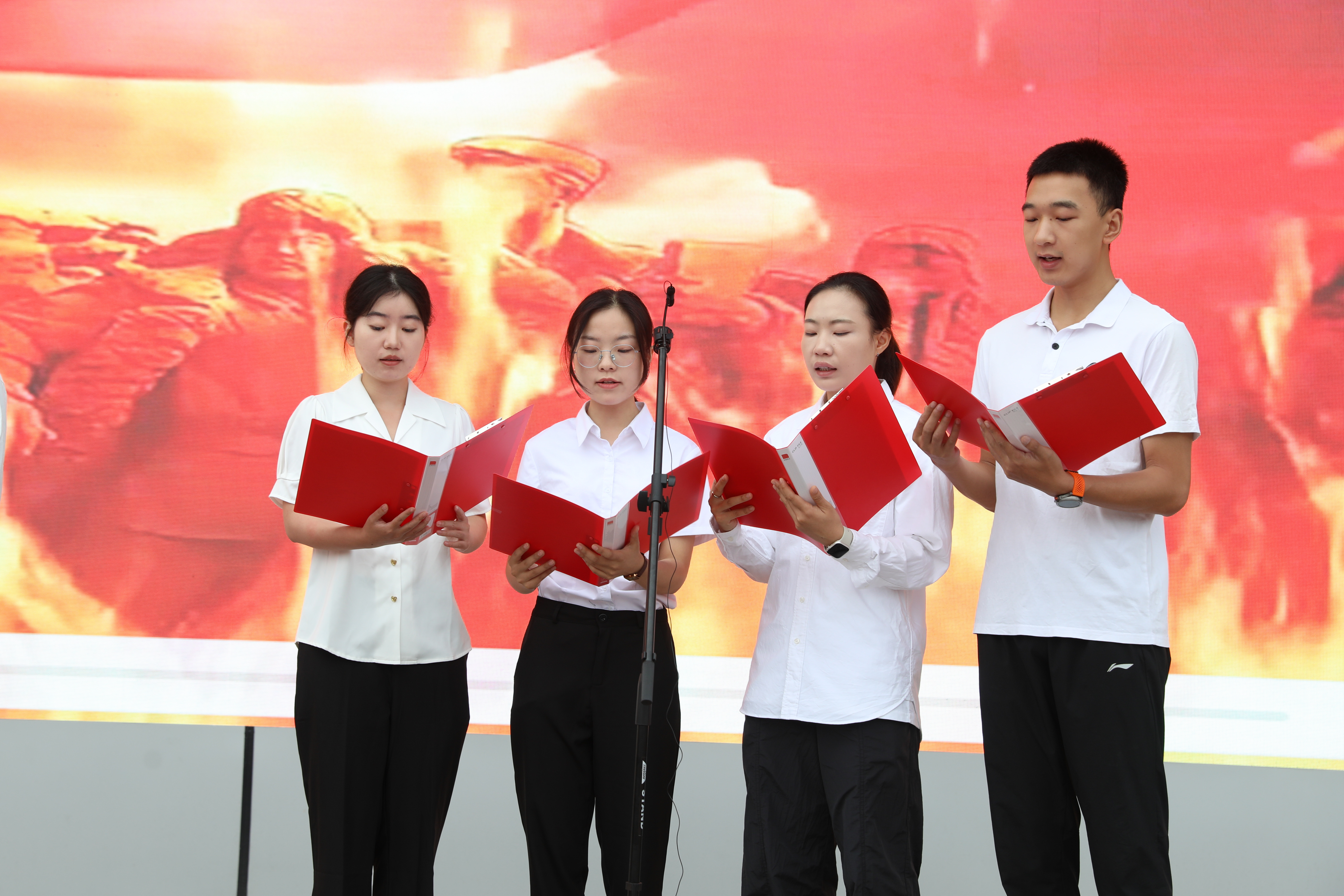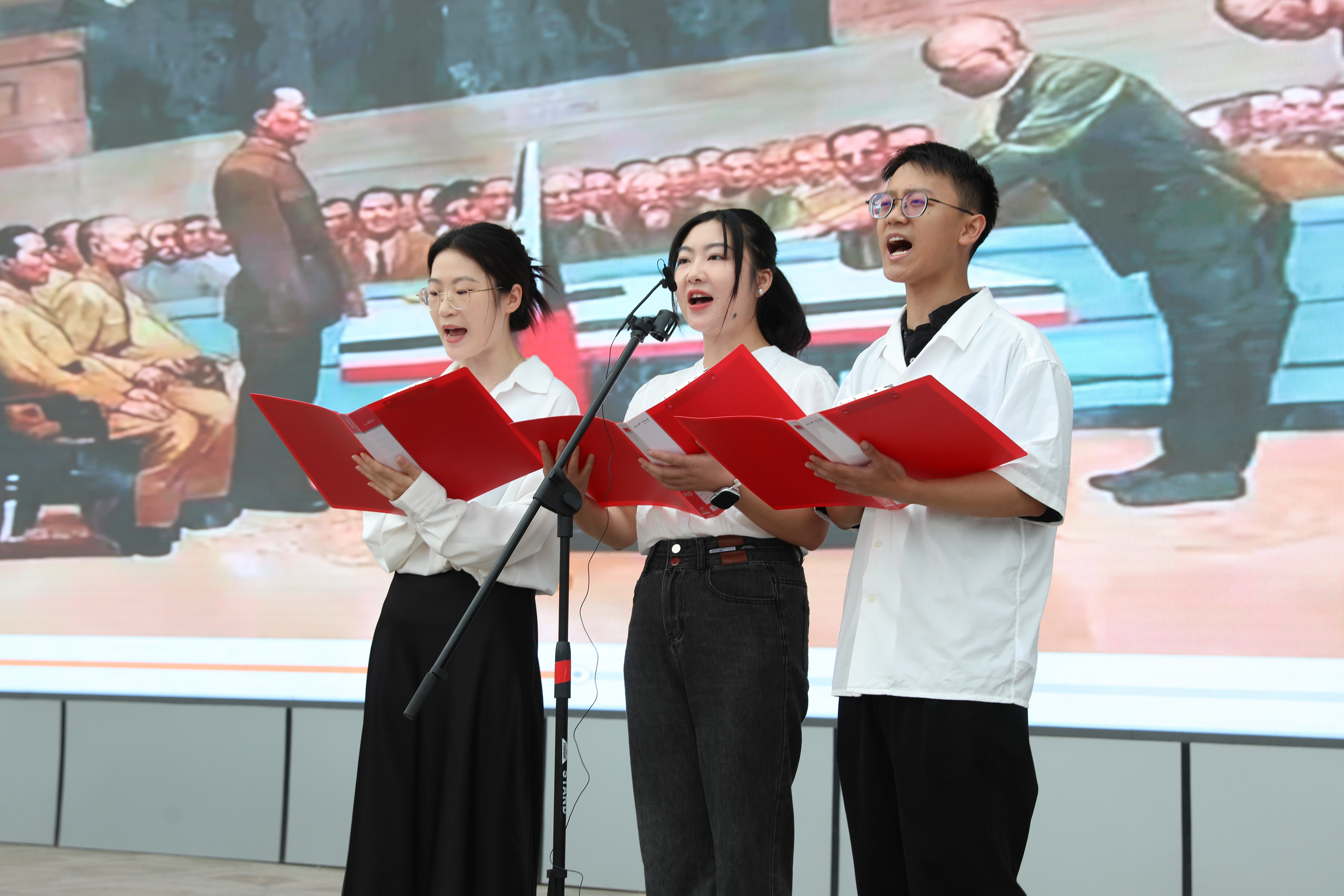 一段抗戰(zhàn)歷史視頻將時光拉回烽火歲月。畫面中英雄的身影與臺下青春的面容交錯,構(gòu)成一幅跨越時空的青春圖畫。新進教師們帶來的詩朗誦《烽火八秩,青春遠征》,用鏗鏘語句搭建起連接過去與現(xiàn)在的橋梁——“同樣的熱血,不同的戰(zhàn)場;不同的使命,同樣的擔(dān)當(dāng)!
