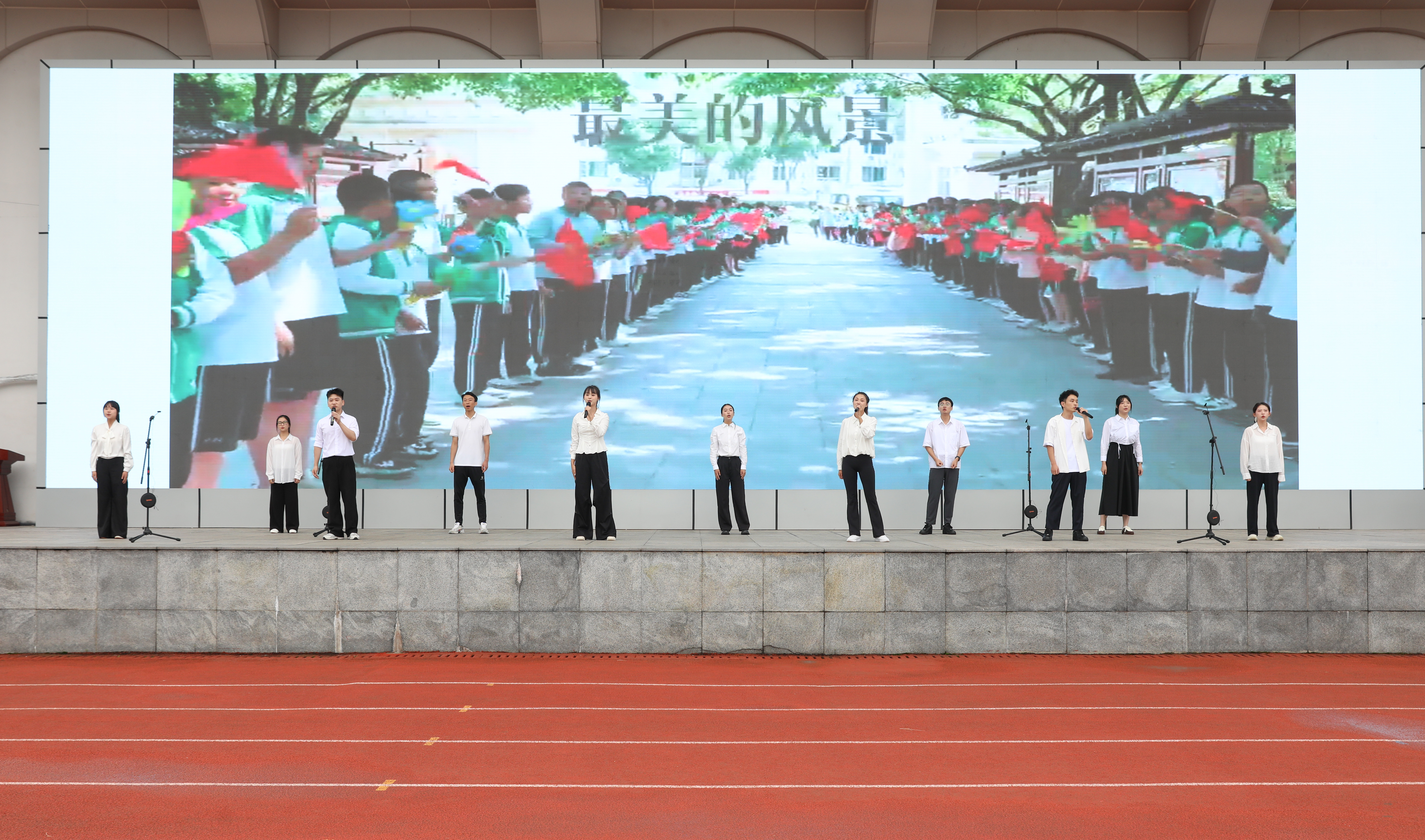 典禮在新進教師們《我們都是追夢人》的歌聲中拉下帷幕?!懊總€身影,同陽光奔跑;我們揮灑汗水,回眸微笑……簡單的歌詞唱出不簡單的追求,操場上空回蕩的不僅是旋律,更是一代教育工作者與青春少年共同的夢想與承諾。