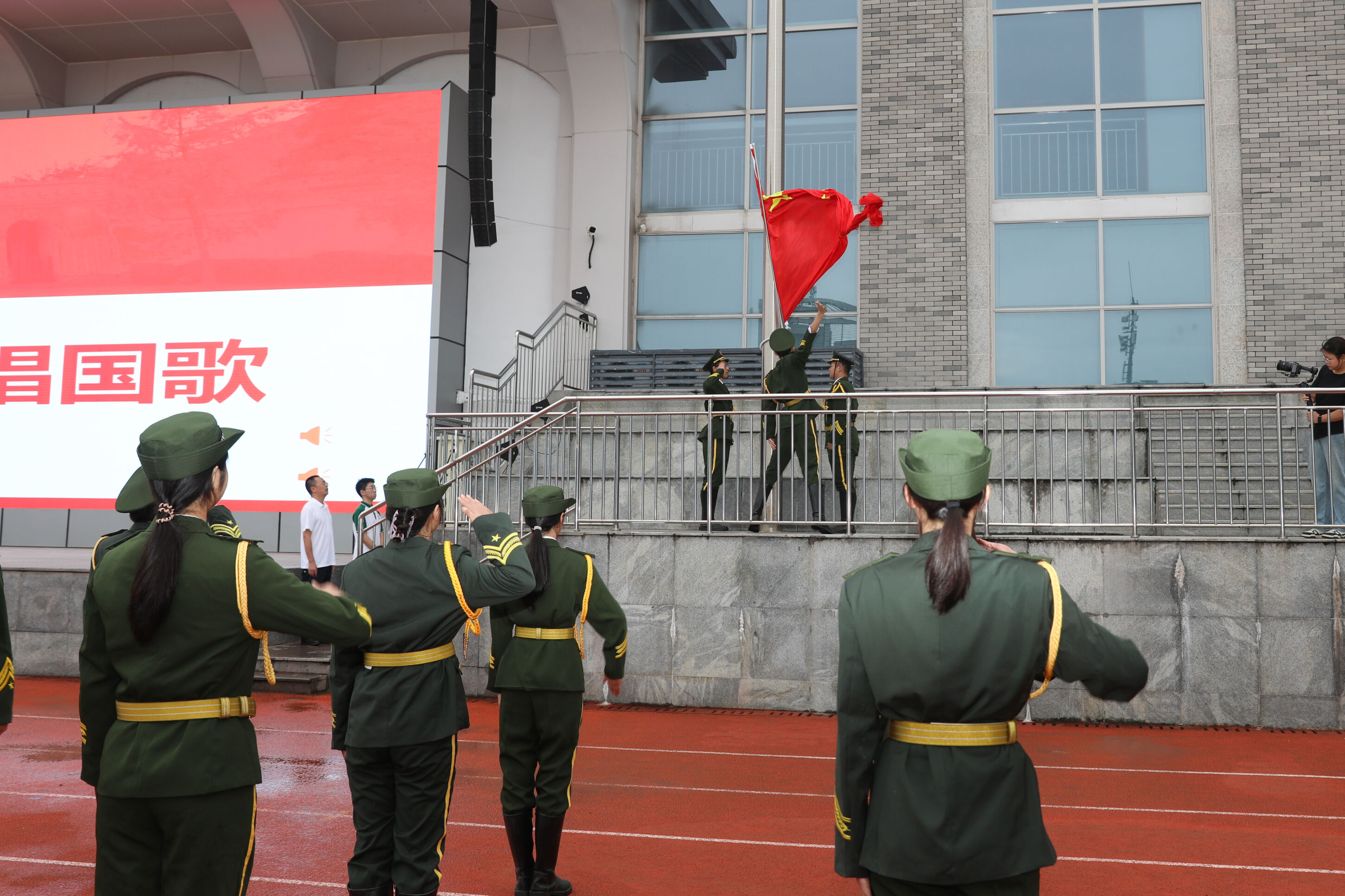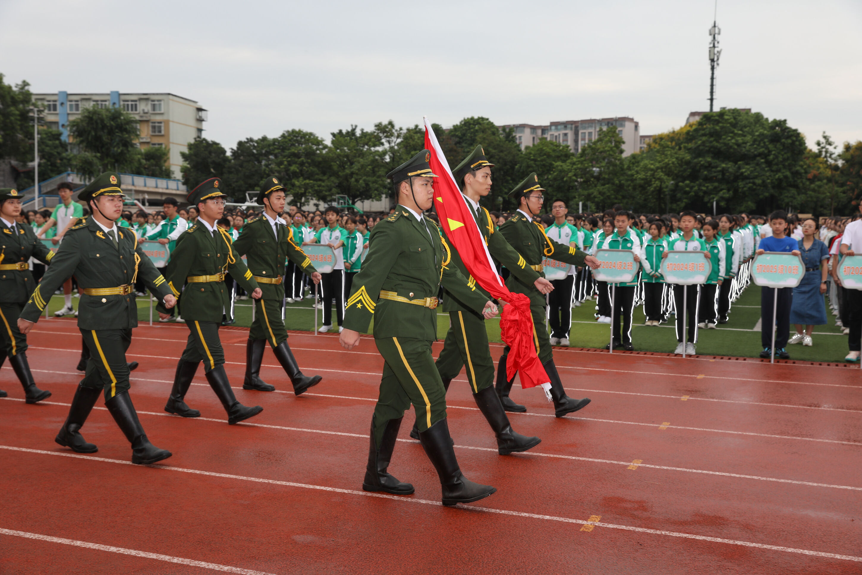 在莊嚴的國歌聲中,紅旗冉冉升起。全體師生肅立凝視,目光中既有對歷史的敬畏,也有對未來的期許。今年恰逢抗戰(zhàn)勝利80周年,這片曾被戰(zhàn)火灼燒過的巴蜀大地,此刻正被瑯瑯書聲溫柔擁抱。國旗下的少年們,站在歷史與未來的交匯點上,用堅定的注目禮完成了一場無聲的青春宣誓。