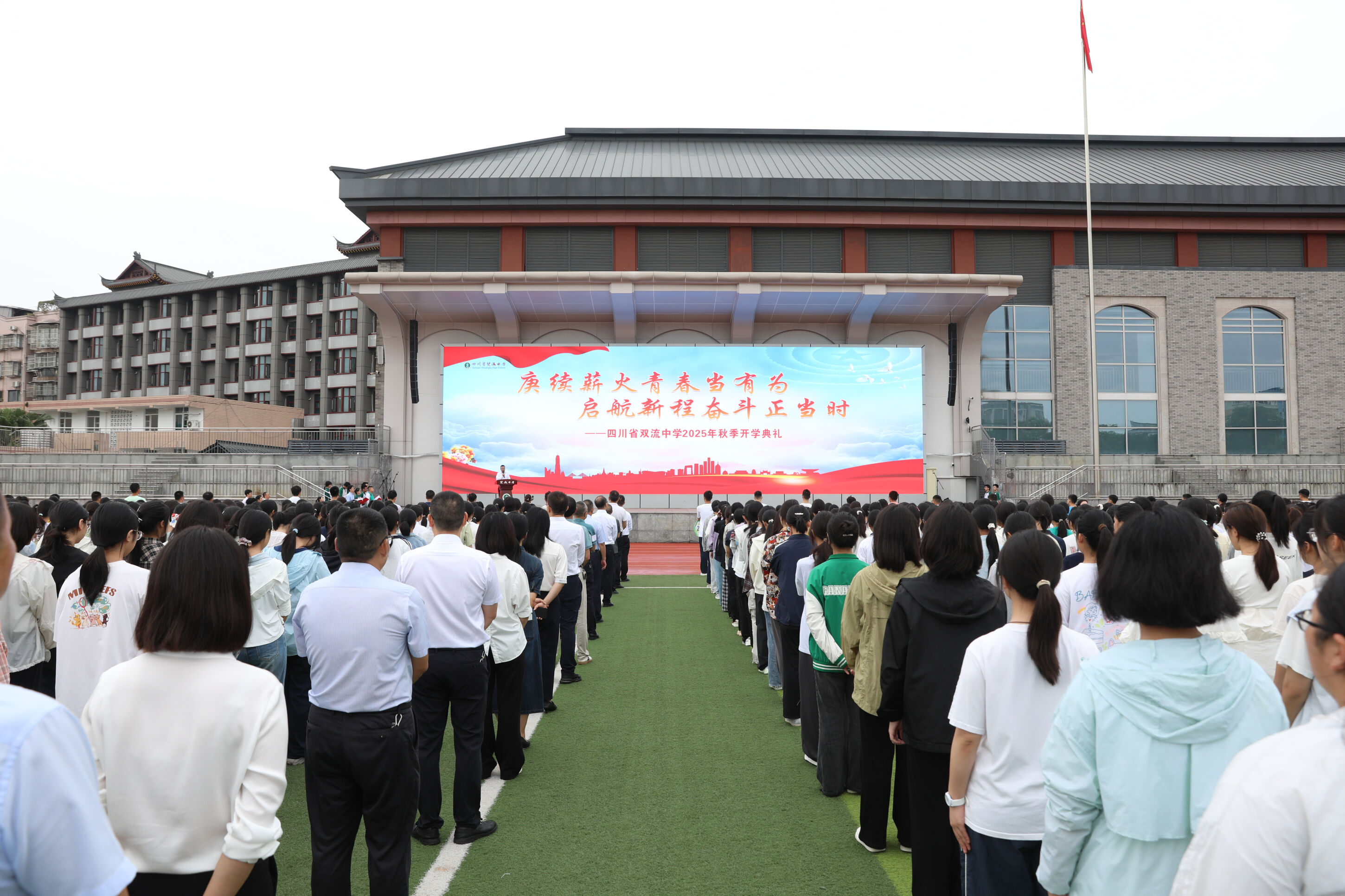 桂香暗渡,盈袖秋風(fēng)拂過青春的眉眼;碩果滿枝,金色季節(jié)叩響知識的大門。當(dāng)夏日的喧囂漸漸沉淀為秋日的豐饒,我們于收獲的季節(jié)里播種新的希望。202598日,四川省雙流中學(xué)全體師生齊聚綠茵場,隆重舉行庚續(xù)薪火青春當(dāng)有為,啟航新程奮斗正當(dāng)時為主題的2025年秋季開學(xué)典禮。