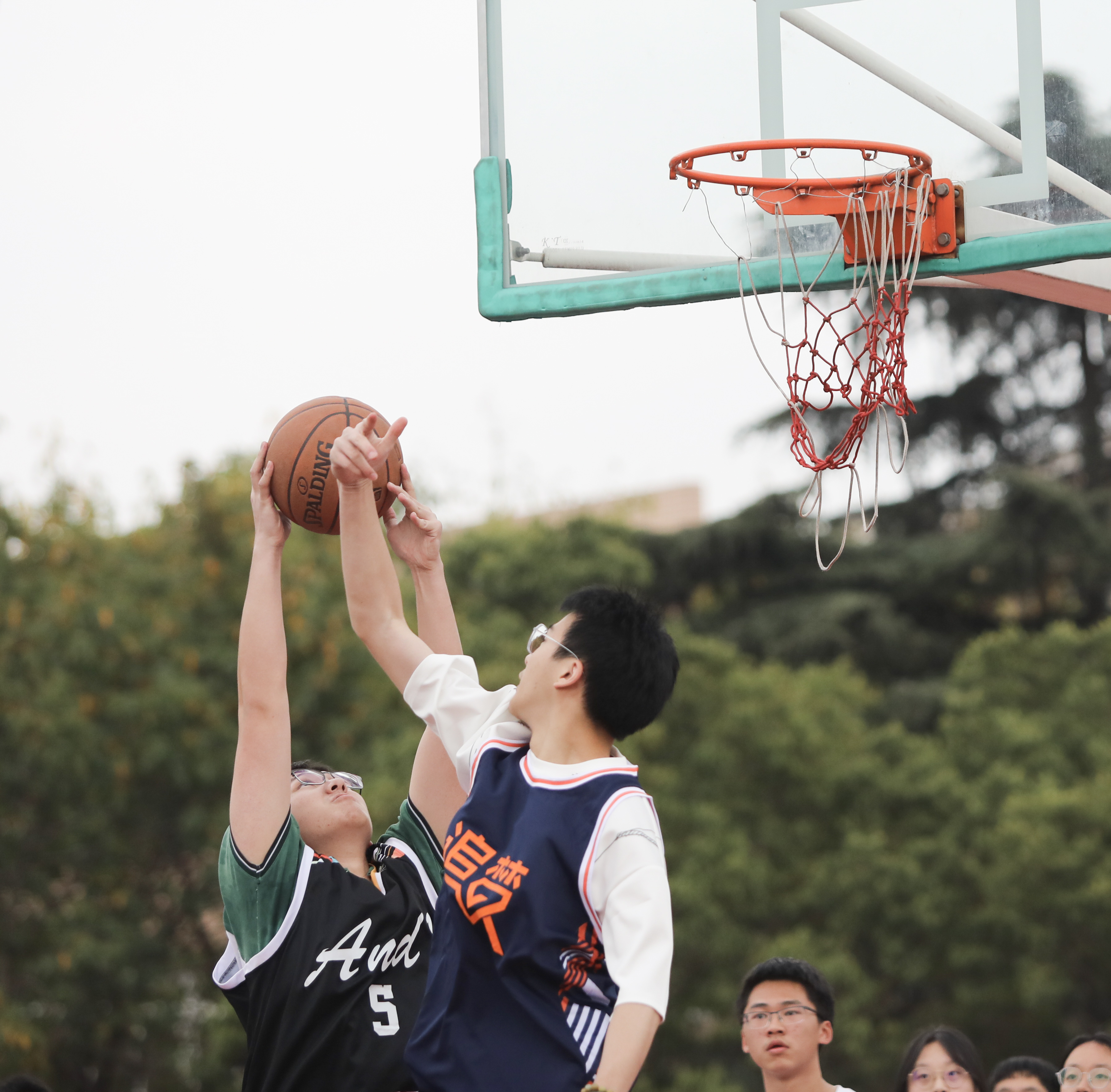 賽場上,一場場緊張激烈、扣人心弦的角逐正在上演;比賽中,籃球在隊員們手中傳遞時,歡呼聲陣陣傳來。每一次胯下運球、成功防守、傳切配合、籃板拼搶和犀利進攻,總會讓啦啦隊振臂高呼;每一次投籃和罰球,總會讓現場觀眾屏氣凝神,隊員們奮勇拼搏,團結協作,永不放棄;比分領先時,乘勝追擊,不驕不躁;比分落后時,越挫越勇,和時間賽跑,每分必爭?,F場此起彼伏的吶喊聲和歡呼聲,既是對隊員的鼓勵,也是對青春的宣誓。