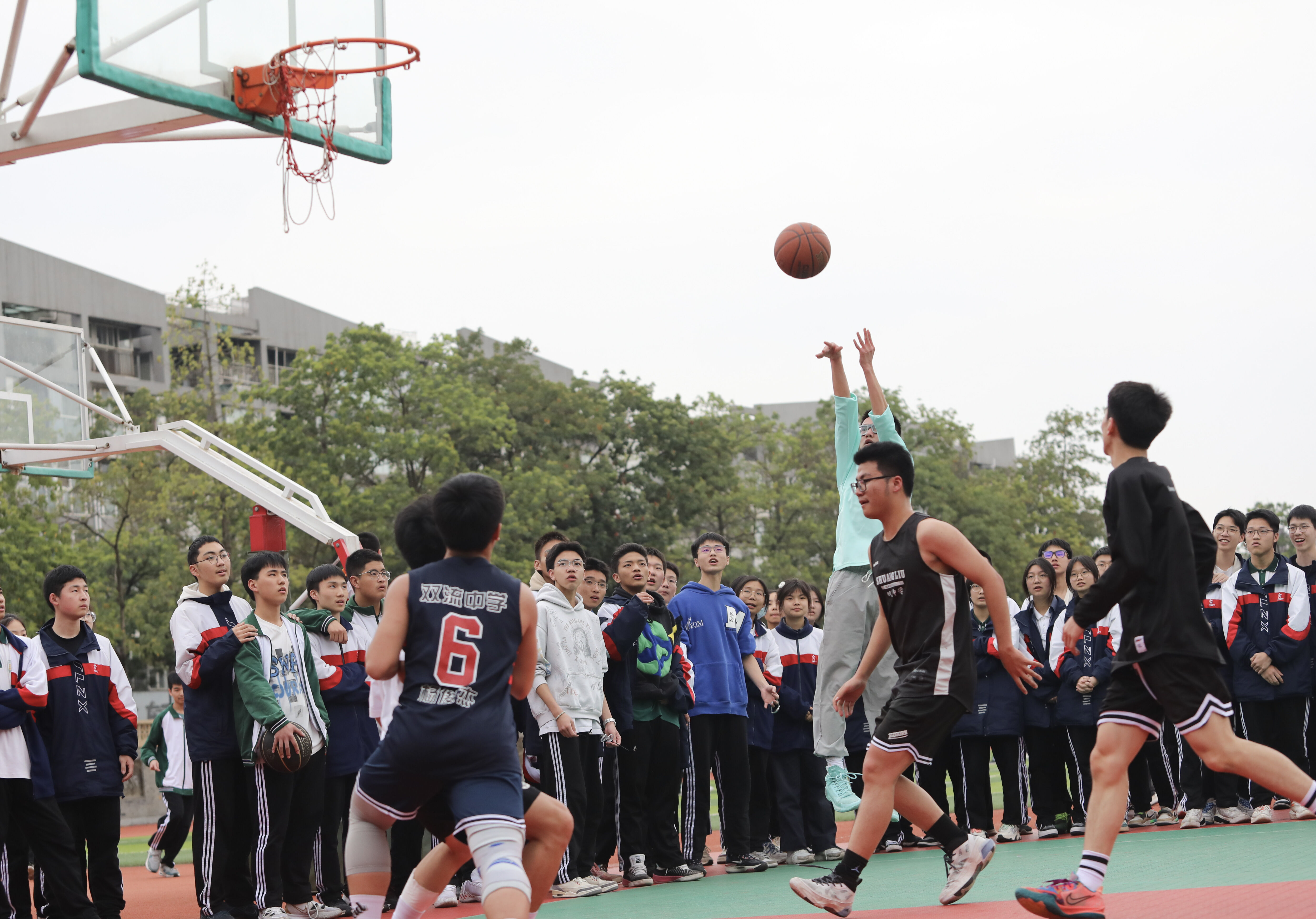 完全人格,首在體育,強身健體,躍動青春。初夏陽光正好,籃球書寫青春,雙流中學的籃球場上演了一場場激烈的對決。年輕的身影在球場上奔跑跳躍,汗水與歡呼交織,充分展現了我校高二學生的青春活力與拼搏精神。讓我們一起回顧這場籃球盛宴,感受那份屬于青春的熱血與激情吧!【圖片1】精彩瞬間助威時的吶喊、震天的歡呼、揮灑的汗水、場邊的加...
