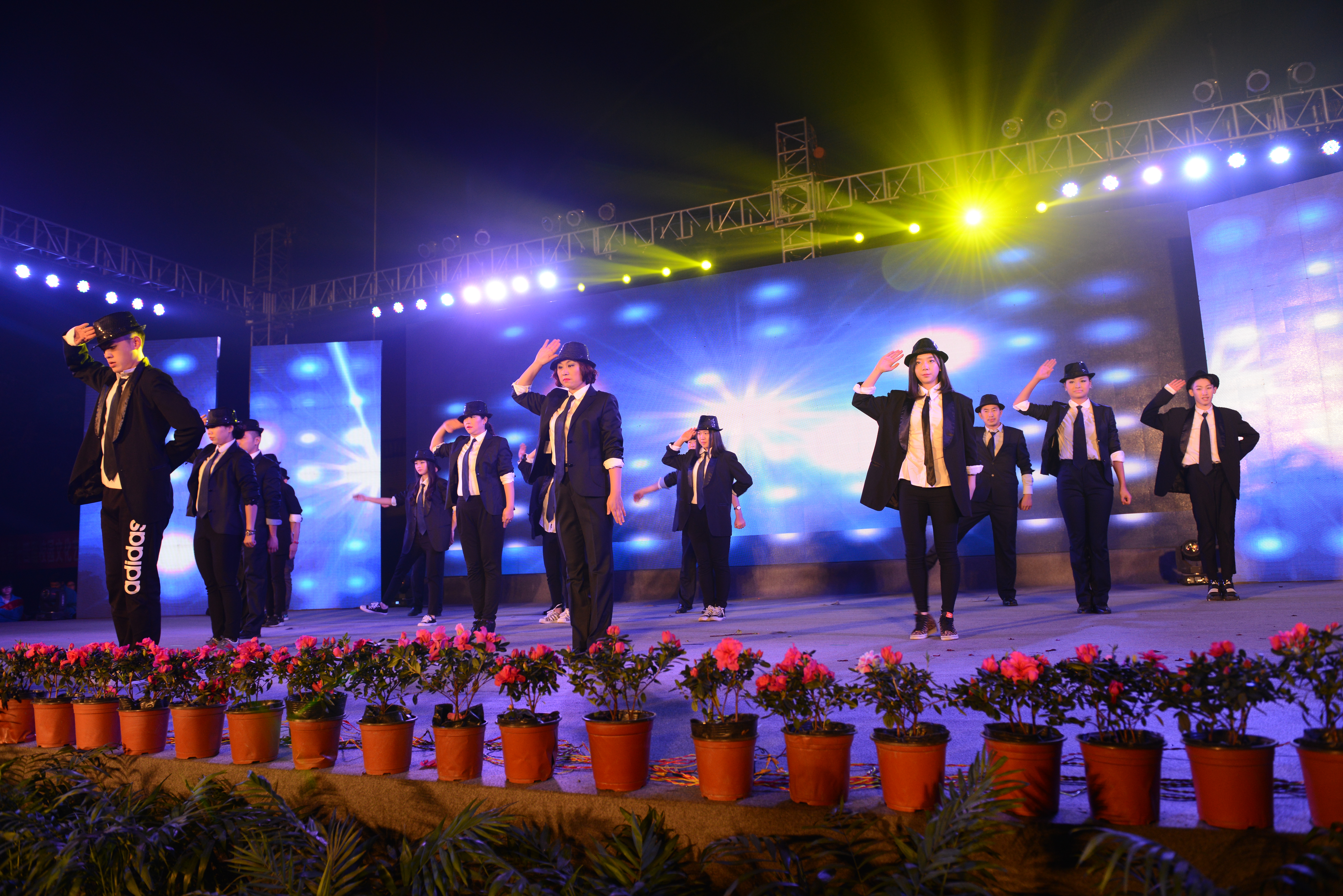 隨著開場舞奠定的喜慶基調,現(xiàn)場涌起一片歡樂,人們漸漸被精彩連連的演出所陶醉。斑斕眩目的燈光、LED背景屏強化了演出效果,《燃燒吧,青春》《禮儀之邦》《奔跑吧,兄弟》《魔術與舞蹈》《心 聲》《架子鼓表演》《明天會更好》《ROLL DEEP》《伴隨著你》《雅音詩韻》《騰空的日子》《最炫“物理”風》等精彩節(jié)目相繼上演,一次次把晚會氣氛推向高潮,催人奮進的激情在觀眾心中澎湃。