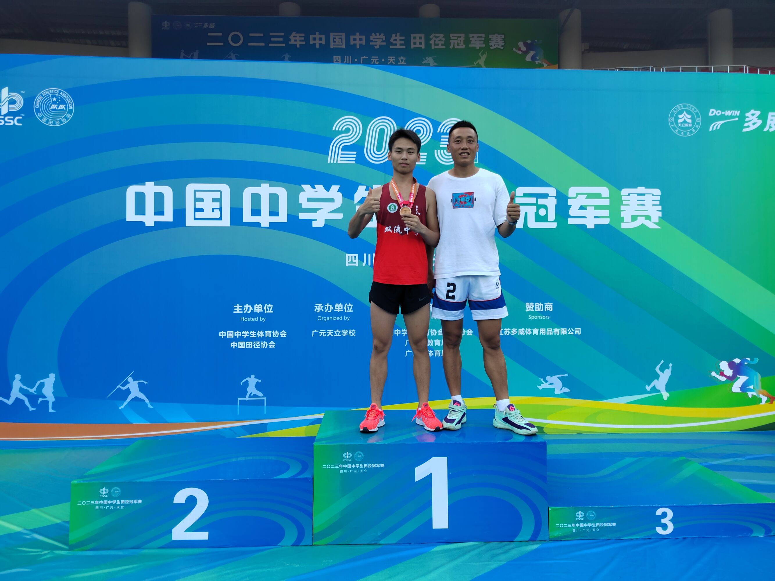 鄒川老師和100米運動員季軍陳俊霖合影