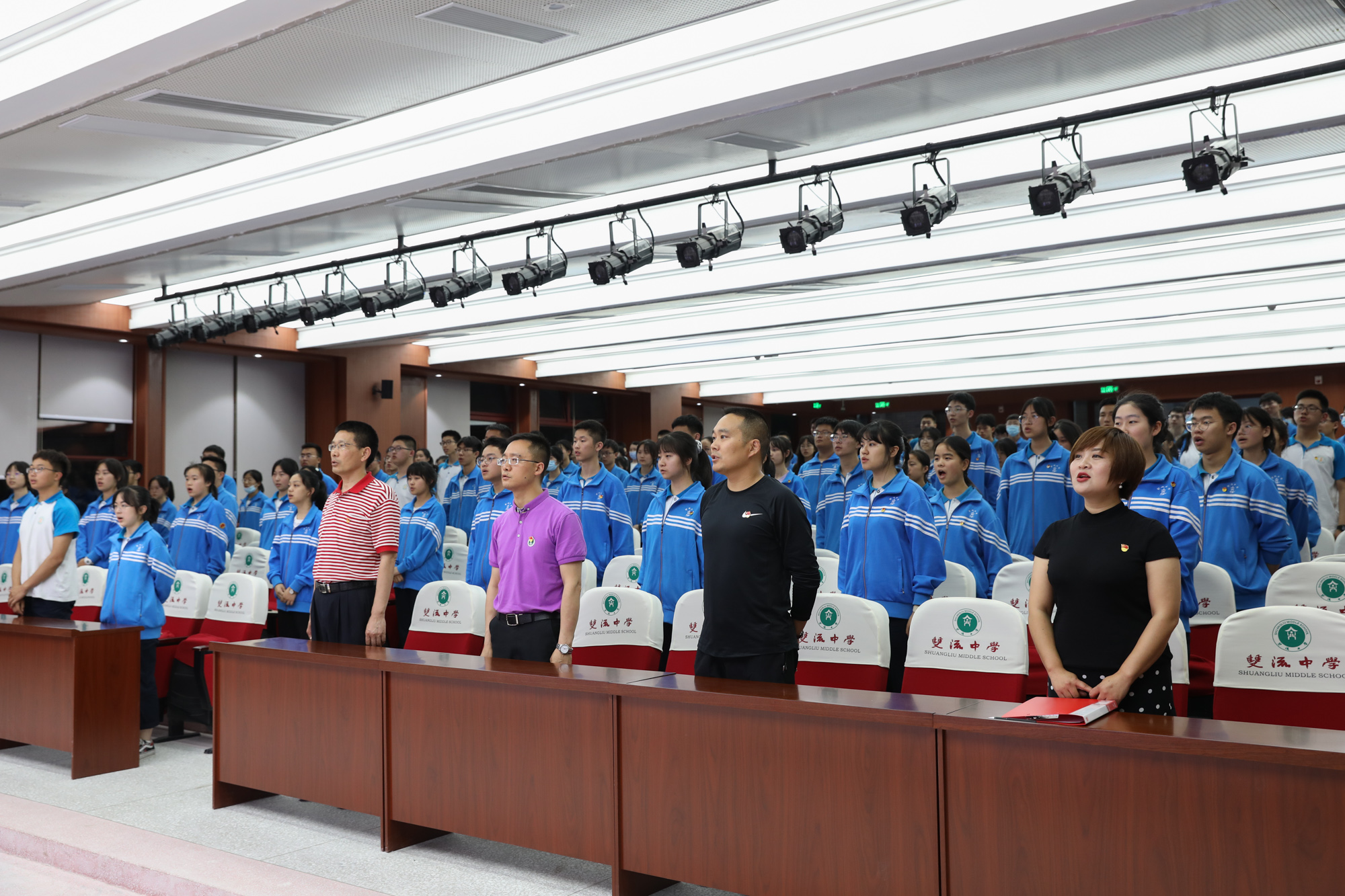 2021年5月18日,共青團雙流中學委員會在叢桂廳會議室舉行本學期新團員入團儀式。(圖為全體師生齊唱國歌)全體師生齊唱國歌