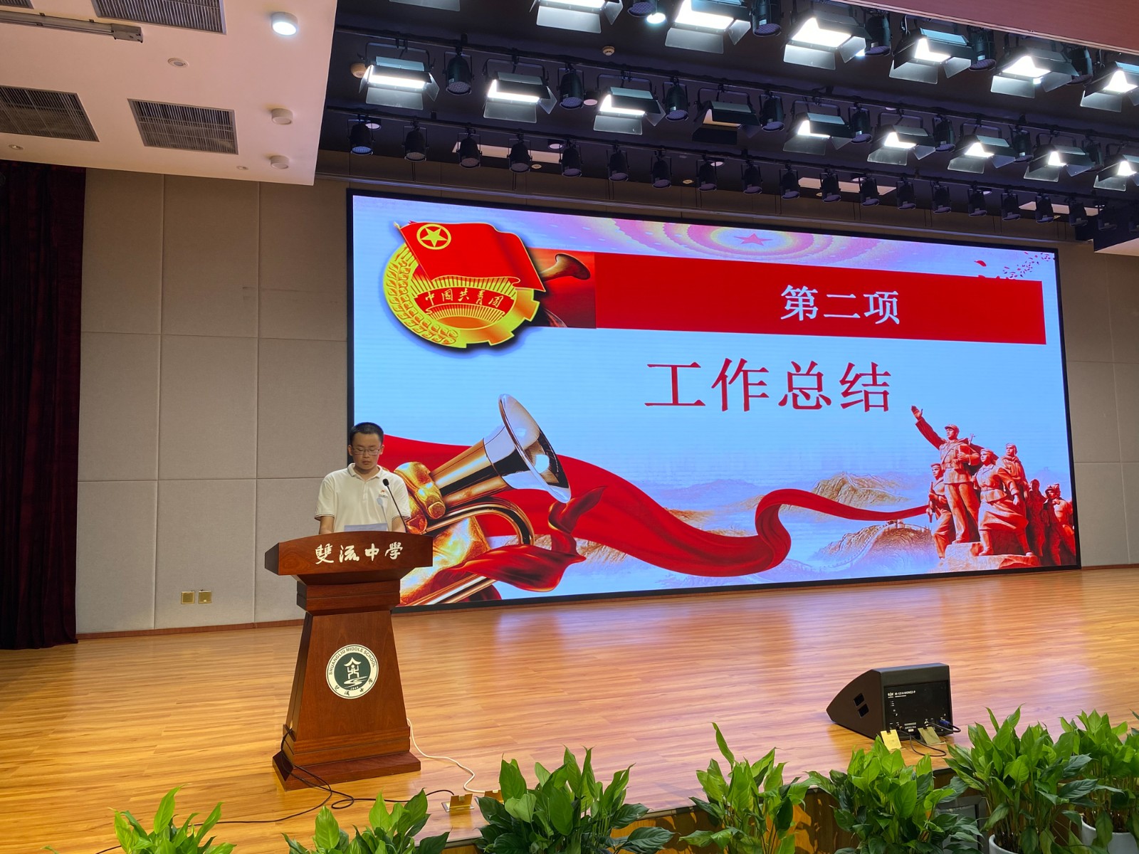 受校團(tuán)委副書記龐波的委托,校團(tuán)委胡峻聞老師全面總結(jié)了近兩年來共青團(tuán)雙流中學(xué)委員會取得的成績和經(jīng)驗,進(jìn)一步明確了今后我校共青團(tuán)工作的奮斗目標(biāo)和主要任務(wù)。