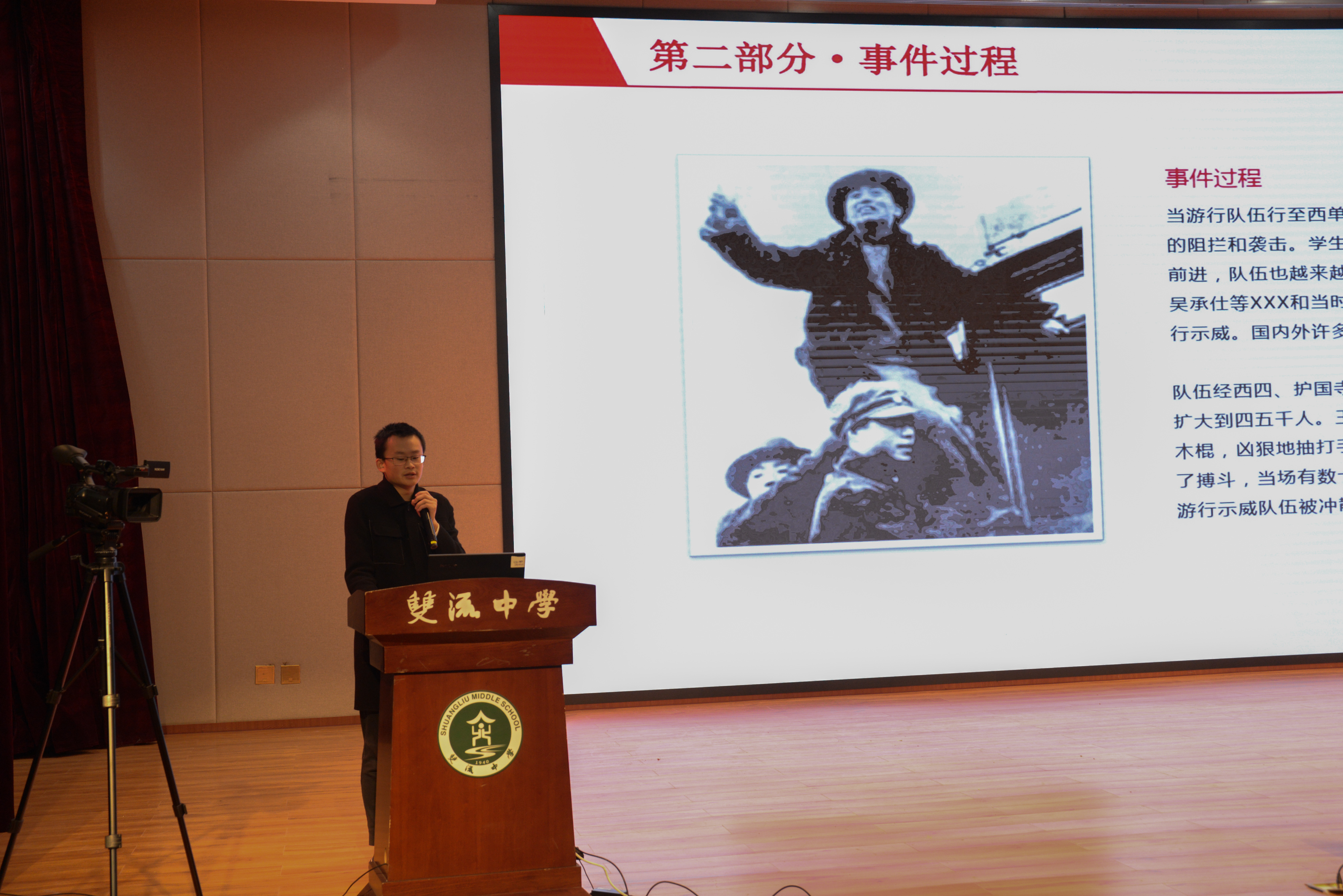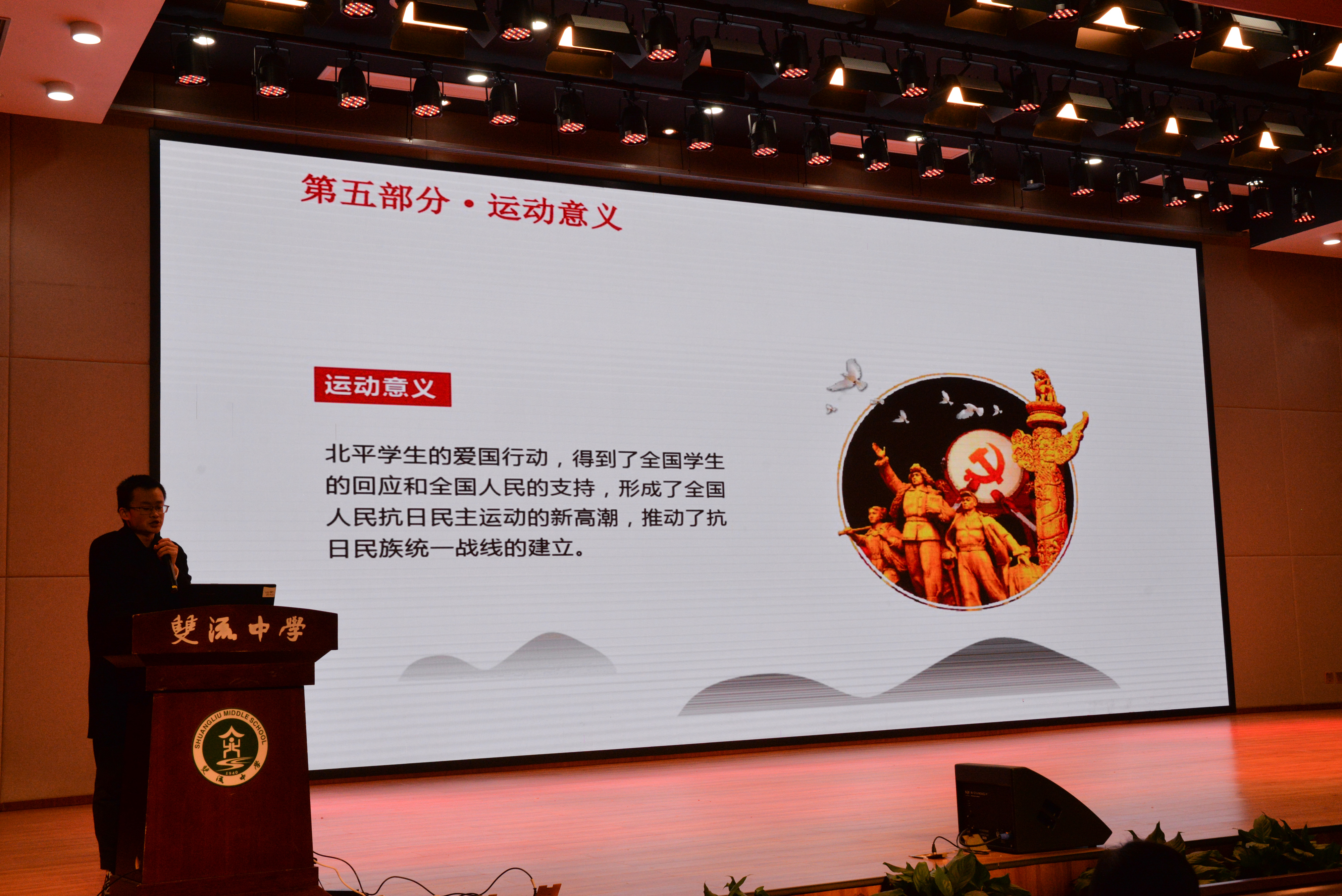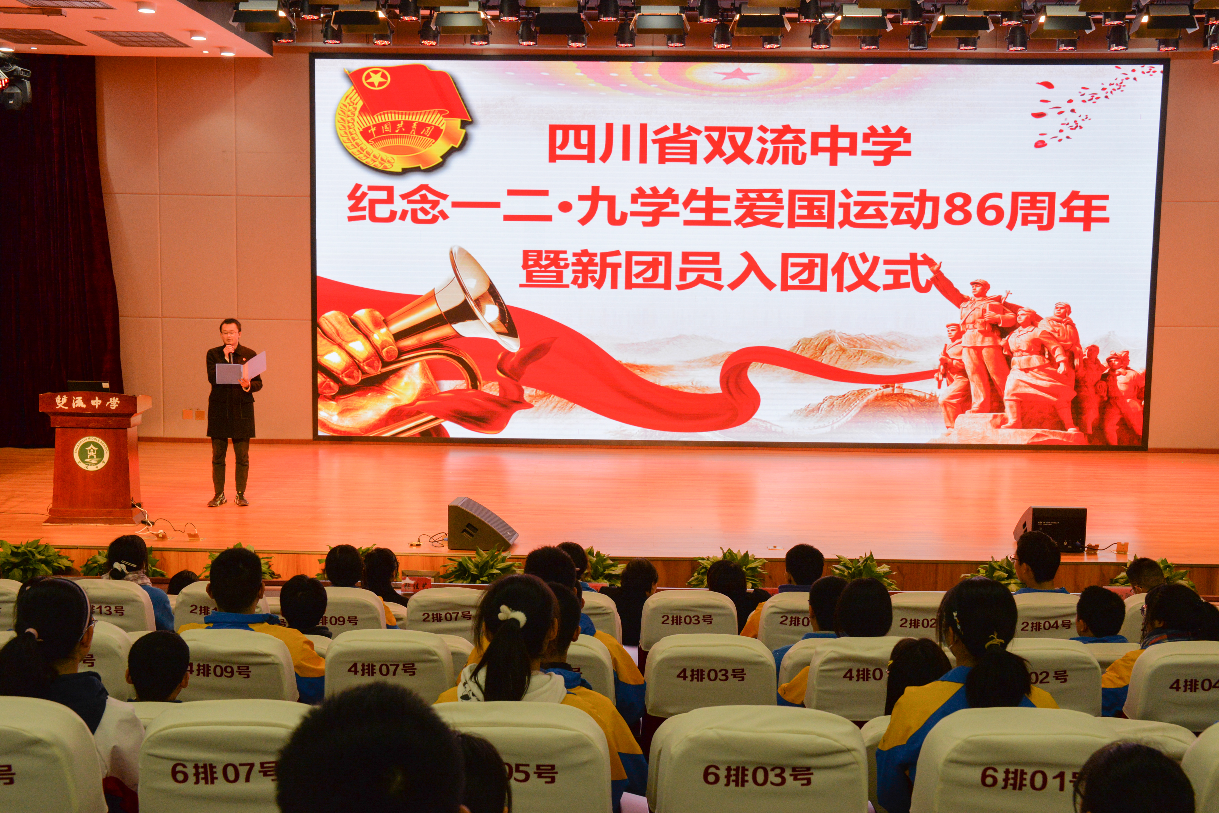 2021年12月9日,在學(xué)校黨委的指導(dǎo)下,共青團(tuán)四川省雙流中學(xué)委員會(huì)在玉蘭廳會(huì)議室舉辦紀(jì)念“一二·九”運(yùn)動(dòng)86周年暨新團(tuán)員入團(tuán)儀式。胡峻聞老師主持儀式。