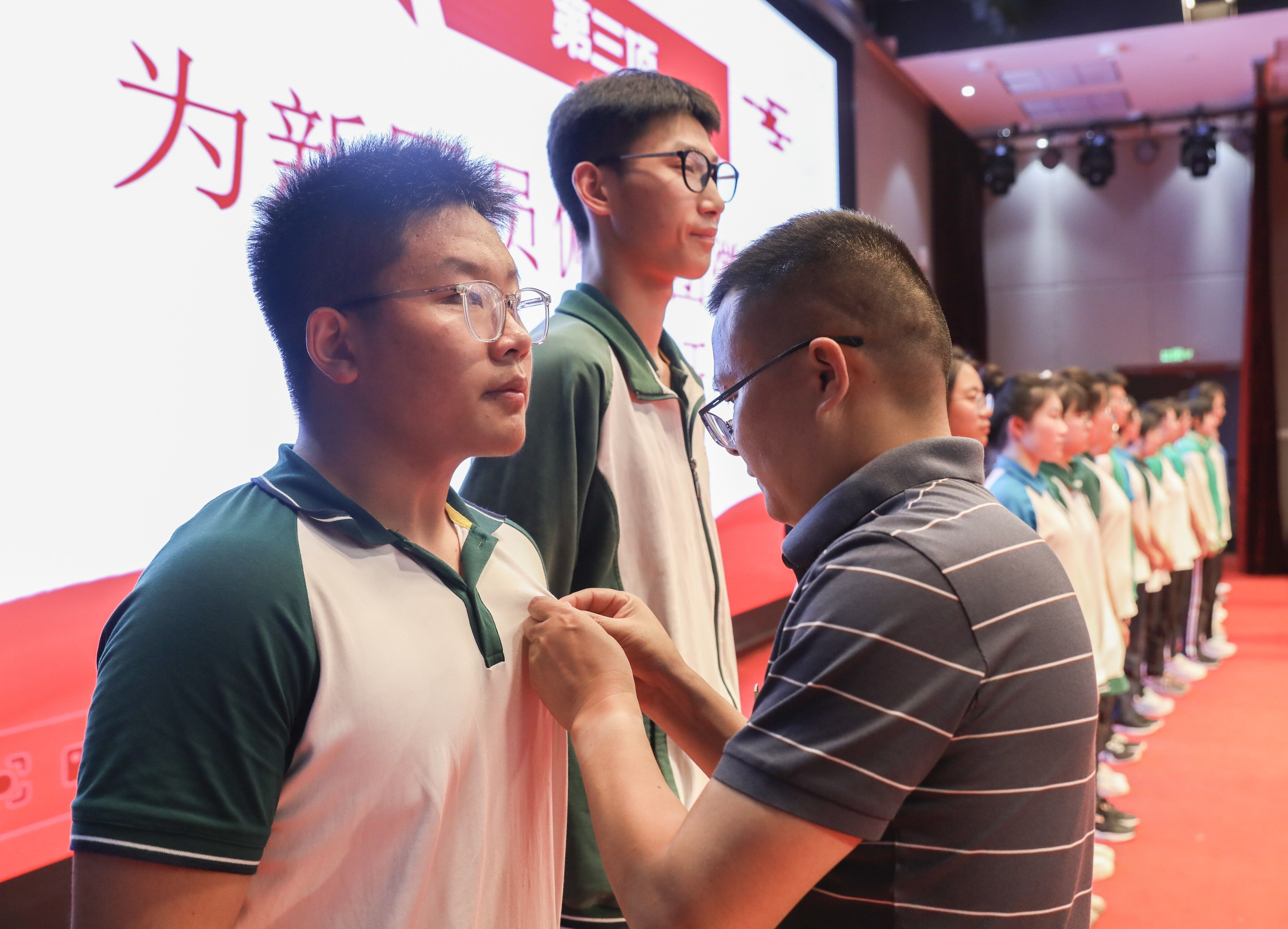 校領(lǐng)導(dǎo)為新團(tuán)員代表佩戴團(tuán)徽