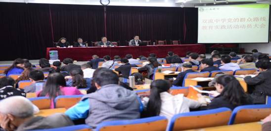 2014年3月31日下午,雙流中學黨總支召開黨的群眾路線教育實踐活動動員大會,第三支部全體黨員參加了大會。向發(fā)友副書記結合我校實際帶領大家重溫黨的“八項規(guī)定”和“六條禁令”,認真學習了兩代會精神。